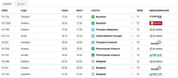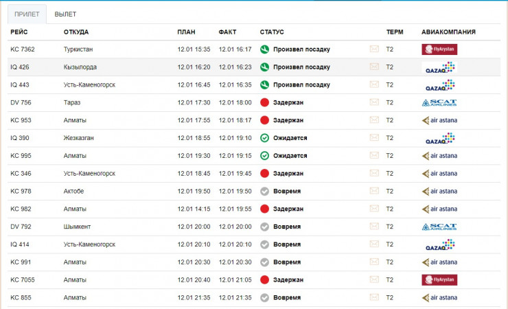Судя по онлайн-табло столичного аэропорта, задерживаются рейсы из Тараза, Алматы, Усть-Каменогорска и Актобе.
