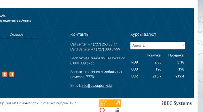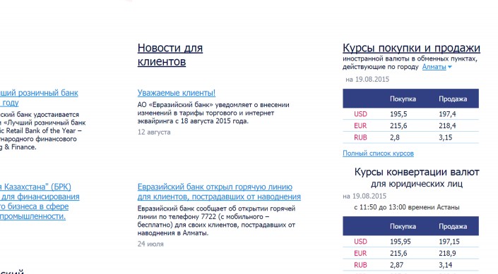 Курс доллара к тенге на сайтах ряда казахстанских банков превысил 194 тенге, передает корреспондент Tengrinews.kz. Так, на сайте Казкоммерцбанка установлен курс доллара на продажу в 198.67 тенге, на портале Qazaq Banki - 198 тенге. У Forte bank - 197,5 тенге. На сайте Евразийского банка на 10 тиынов меньше - 197,4.  Сайт Центркредита демонстрирует цену продажи в 194.5 тенге.