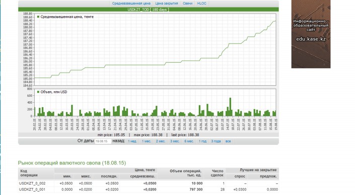 Отметим, на сайте фондовой биржи KASE последняя сделка прошла по цене в 195 тенге. Также было предложение по 197 тенге. Между тем, на сайте Национального банка РК до сих пор установлен курс в 188,35 тенге.