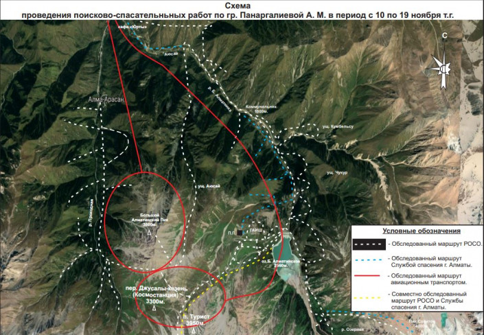 Ранее родственники пропавшей в горах Асель Панаргалиевой написали письмо в КЧС с просьбой привлечь для поисков девушки вертолет, но поиски не дали результатов. 12 ноября по просьбе матери девушки поиски были остановлены, так как родные из-за запеленгованного IMEI-кода телефона посчитали, что она якобы уже спустилась с гор.
