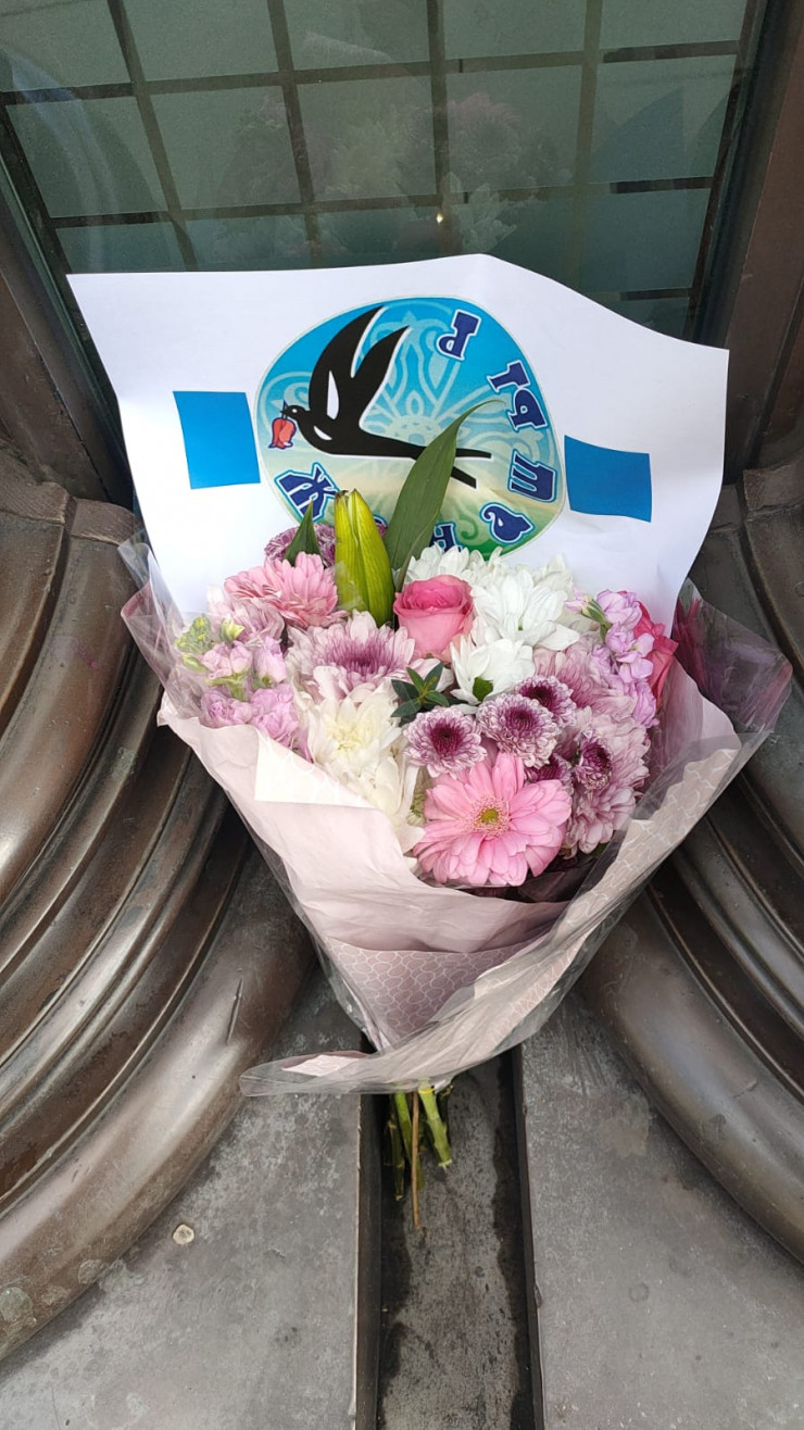 На других кадрах уже публикуется посольство Казахстана в России. Пользователь Twitter Александра Астахова показала, что происходит перед зданием, которое расположено в Москве. Она опубликовала фото цветов и плаката, на котором написано: "Казахстан! Спасибо за доброту! Спасибо, что приютили наших мужчин".