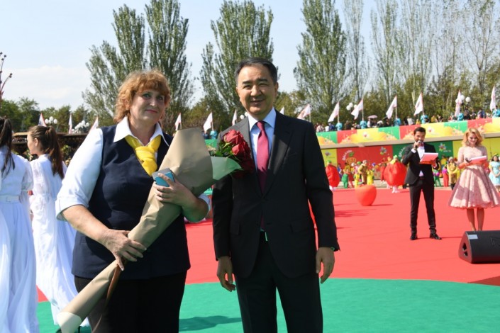 Народный писатель Абдижамил Нурпеисов поблагодарил акима города за присвоенное звание почтенного гражданина Алматы, поздравил горожан и заметил, что получать знак почетного горожанина из рук Бакытжана Сагинтаева для него двойная радость.