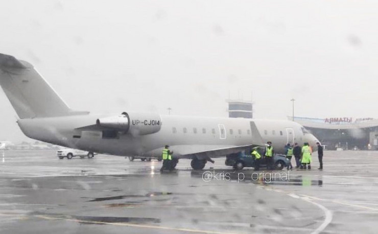 В социальных сетях появилось видео происшествия на взлетно-посадочной полосе международного аэропорта Алматы. На кадрах видно, что автомобиль попал под крыло самолета.