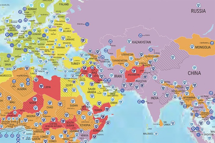 Аналитики компаний International SOS и Control Risks, которые занимаются оценкой глобальных рисков для здоровья и безопасности людей во время путешествий, составили карту мира, иллюстрирующую уровень опасности при посещении различных государств.