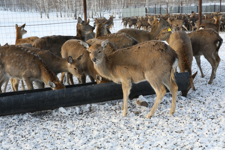 На ферме живут порядка 200 особей. Маралы используются только в лечебных целях, на мясную продукцию их не пускают. Поэтому на ферме содержатся и старые животные. Самки, которые уже не приносят приплод, все равно живут в общем стаде, едят и греются наравне со всеми.