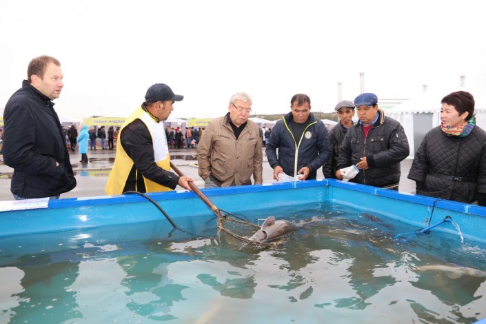 На площади возле ТРЦ "Хан Шатыр" началась ярмарка, на которую привезли продукцию из 12 районов Актюбинской области. Более 120 сельхозпроизводителей и предприятий привезли в столицу тонны мяса, овощей. Молочную продукцию и рыбу. На прилавки были выставлены даже живые осетры.