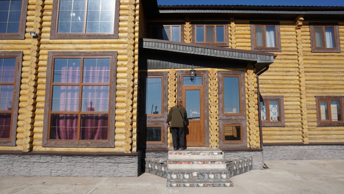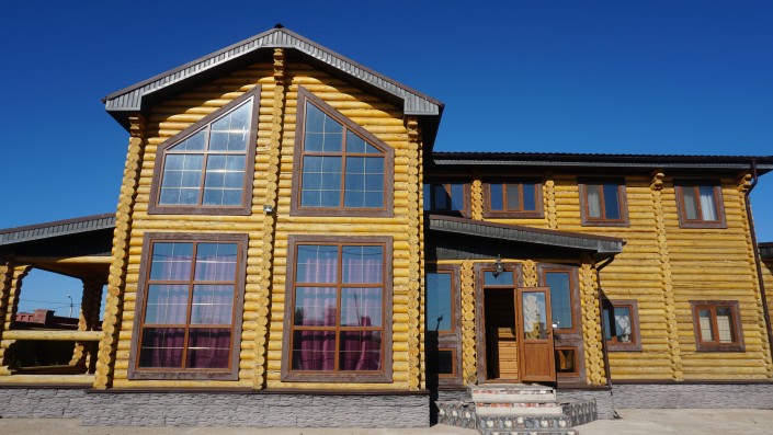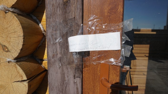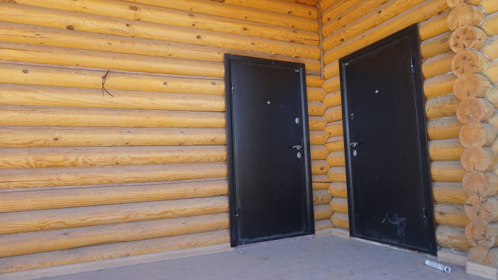 Обойдя дом вокруг, мы насчитали пять входных дверей. На древесине, из которой построен дом, также замечены трещины.