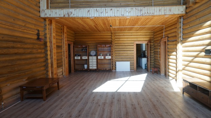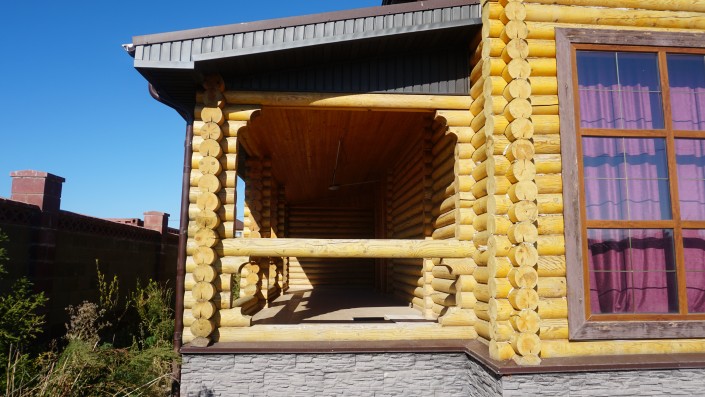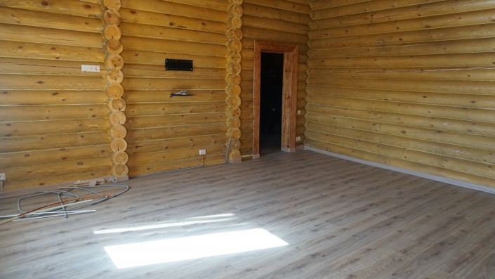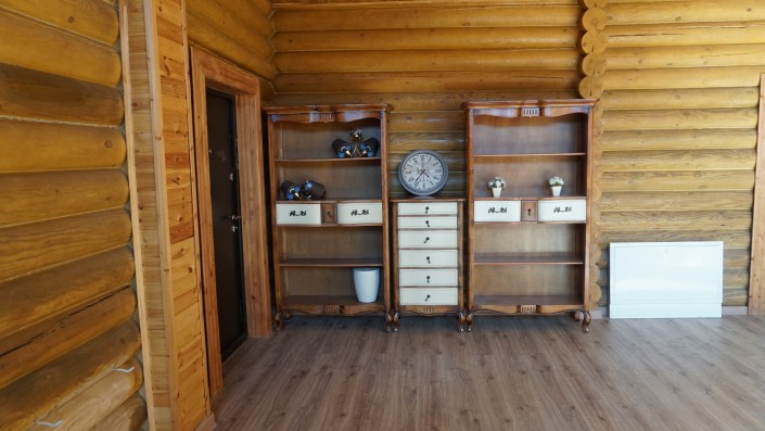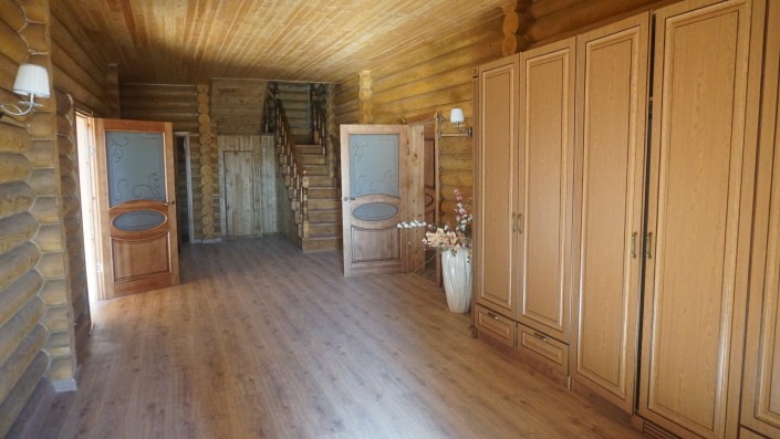 Когда попадаешь в огромный дом, сразу ощущается запах дерева. Двухэтажный коттедж полностью построили из сруба. Общая площадь - 520 квадратных метров.