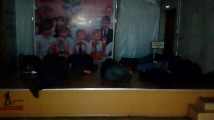 Некоторые из собравшихся привели с собой маленьких детей и школьников и, несмотря на мороз, отказывались войти в ДК Шахтинска. Жены и члены семей горняков говорили, что таким образом они проявляют солидарность с бастующими под землей  братьями-шахтерами. Спустя некоторое время жители все же прошли в зал ДК.