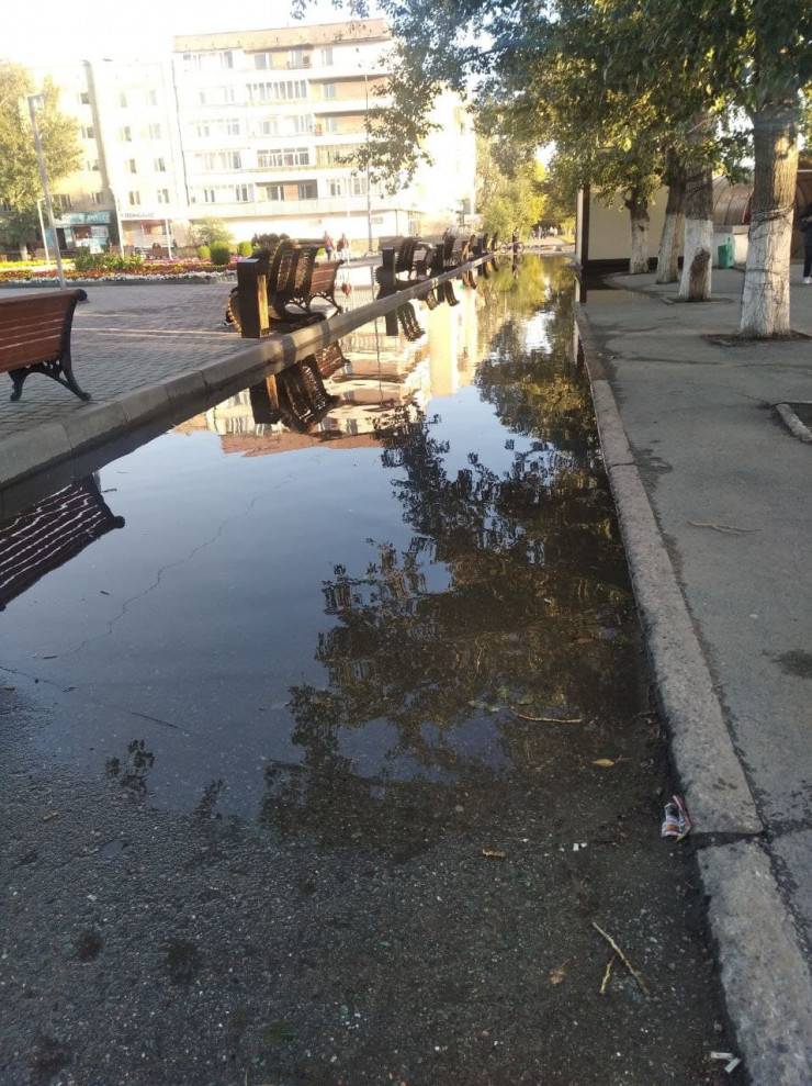 Женщина отметила, что над подземным переходом, сверху, прямо возле площади Ауэзова весь тротуар залит водой. То же самое возле остановки.