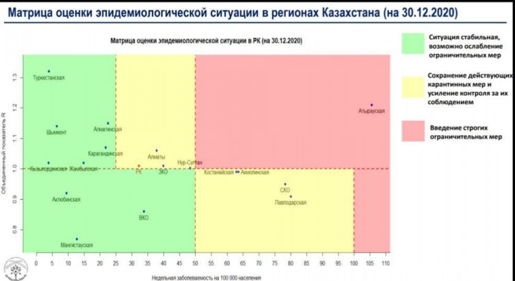 Отметим, по последним данным Межведомственной комиссии по нераспространению коронавируса, Восточно-Казахстанская область находится в "зеленой" зоне. Данные таблицы актуальны на 30 декабря.