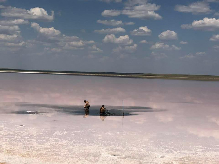 "По прибытии на Кобейтуз сотрудники министерства и журналисты стали свидетелями того, как семейная пара, несмотря на запрет на посещение озера, в обход блокпостов все же приехала на это место и, более того, набрала лопатой несколько ведер грязи.