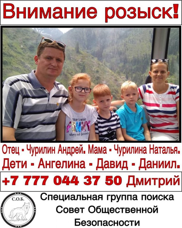 Последний раз с родственниками семья Чурилиных общалась 3 августа. Выходили в Сеть 4 августа. Сейчас родные обратились в полицию Алатауского района.