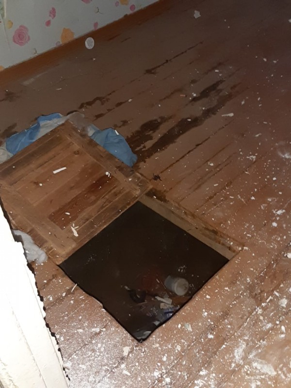 По словам женщины, бывшие соседи с первого этажа при переезде бросили свою квартиру открытой. В прошлую субботу неизвестные срезали здесь батареи, и вода из радиаторов залила погреб. "Здесь даже находиться небезопасно. Соседние квартиры уже разбирать пытаются. Мы только успеваем мародеров гонять. Кругом все квартиры пустуют, не сегодня-завтра к нам начнут в окна лезть", - сетует женщина.