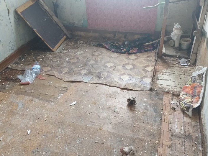 До февраля этого года здесь жили еще семь семей. Позже жильцов переселили в новый дом. А семья Ирины осталась. Вместе с женщиной в квартире живет брат, муж, шестимесячный сын и ее 58-летняя мама. Пожилая женщина страдает серьезным сердечным заболеванием и по медицинским показаниям ей разрешено жить в квартире не выше третьего этажа.