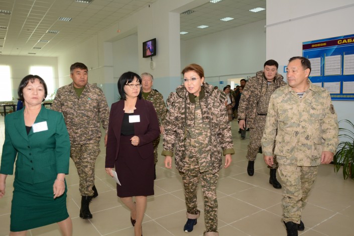 В частности, спецшколу посетили председатель комитета по международным отношениям, обороне и безопасности Сената Дарига Назарбаева, сенаторы Дархан Калетаев, Тулеубек Мукашев и аким Мангистауской области Ералы Тугжанов. Они прибыли на встречу в камуфляжной форме.