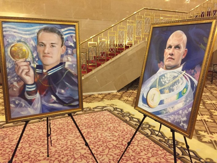 Серик Сапиев купил шаржи на Василия Левита и Дмитрия Баландина Фото Tengrinews.kz.