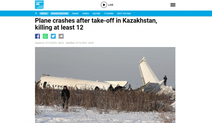 Шетел басылымдары Алматыдағы ұшақ апаты туралы қалай ақпарат таратты?