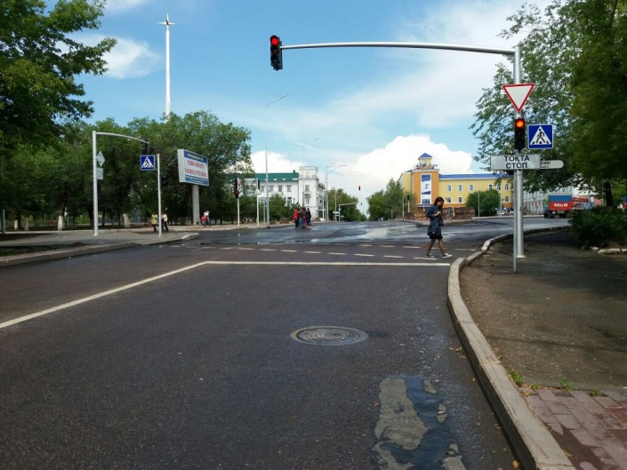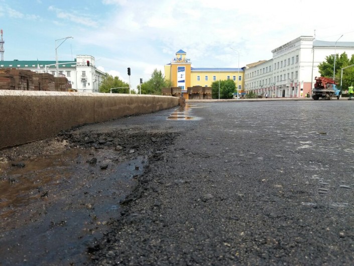 Вскоре к площади подошел сотрудник подрядной организации, которая занимается реконструкцией этой улицы. Юрий Мальчушкин представился заместителем директора ТОО "Агродор". Он пояснил, что работы на данном участке производятся согласно техническим нормам. А то, что асфальт немного прилипает к обуви, естественный процесс.