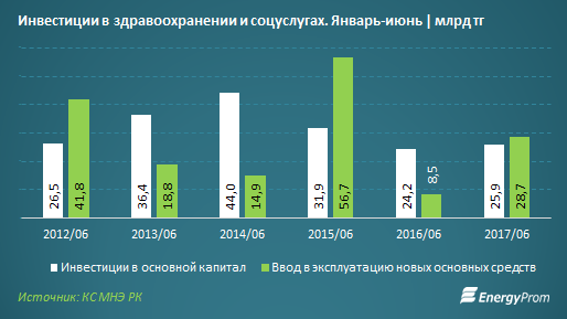 Как отмечают аналитики, темпы роста инвестиций в здравоохранение остаются слабыми. За январь-июнь 2017 года в основные фонды предприятий здравоохранения и социальных услуг было инвестировано 25,9 миллиарда тенге. Это на 6,8 процента больше объемов прошлого года.