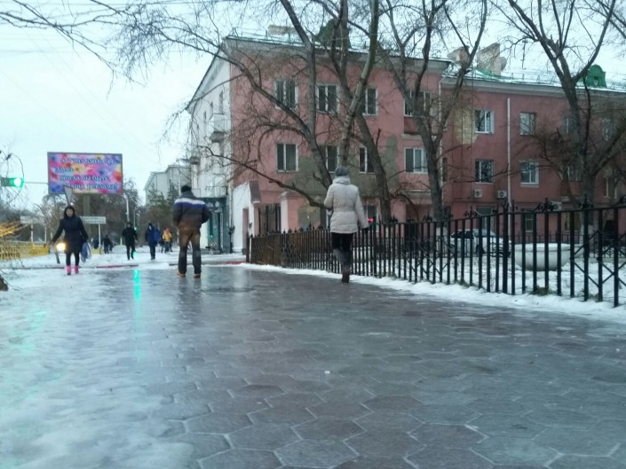 Костанайцев застал врасплох гололед, передает корреспондент Tengrinews.kz. В городе затруднено передвижение транспорта, дети не смогли доехать до школы, а взрослые опаздывают на работу.