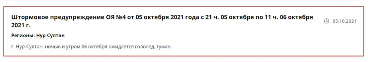 "6 октября 2021 года в Нур-Султане ожидаются сильный туман и сильный гололед", - говорится в SMS-рассылке от службы 112.
