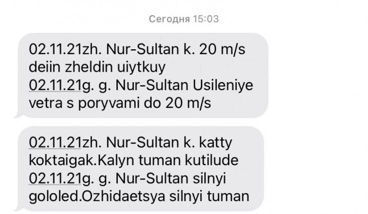 О непогоде астанчан также предупреждают SMS-рассылкой от 112.