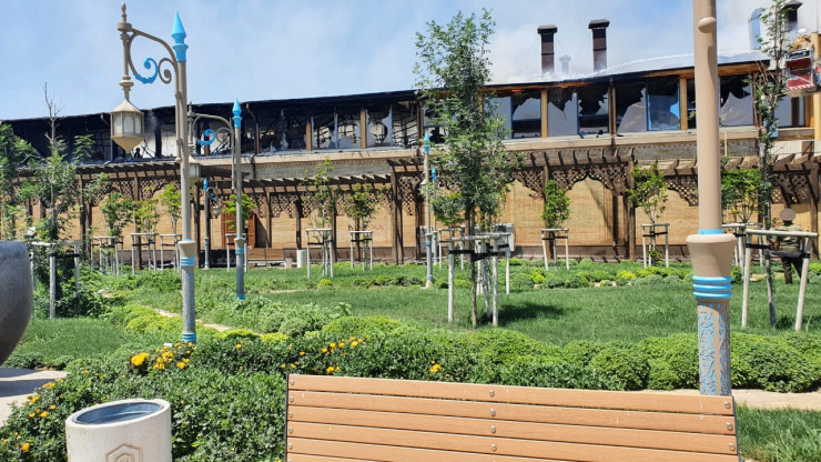 Как сообщили местные власти, пожар произошел не в "Караван-сарае", но поблизости от мавзолея Ходжи Ахмета Яссауи.