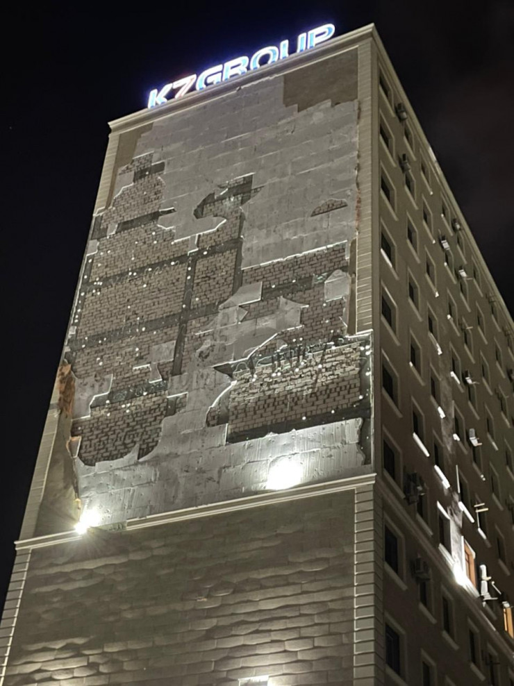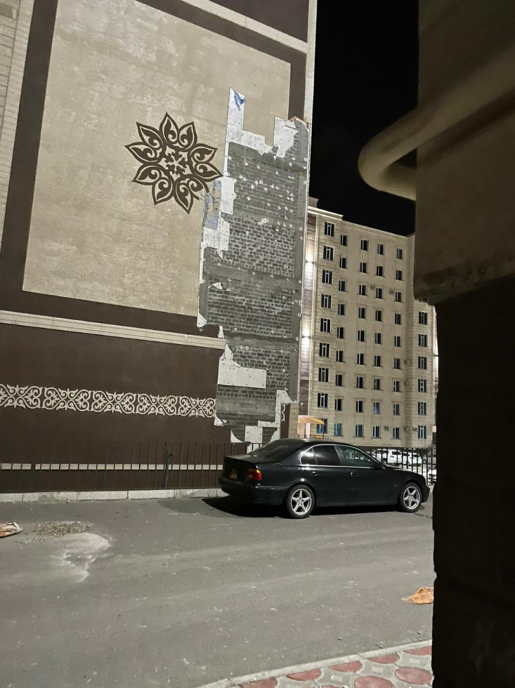 Сильный ветер в Актау: поврежденные авто и сорванный фасад многоэтажки