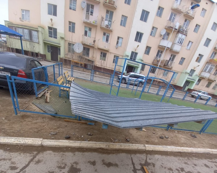 Сильный ветер снес кровлю балкона, которая при падении повредила машину в Кызылорде, передает корреспондент Tengrinews.kz со ссылкой на пресс-службу Департамента по ЧС Кызылординской области.