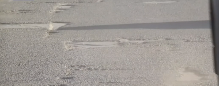 По всему пути выбоины. До самой металлической конструкции. Машинам приходится рискованно лавировать и объезжать препятствия.