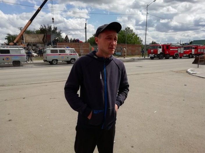 "Произошло внезапно все. Услышали хлопок, побежали. Увидели, народ собирается. Убирали кирпичи, увидели ноги, шорты, вытащили мужчину. Попозже вспыхнул огонь, и приехали пожарные. Самое главное, что живы-здоровы", - рассказал Вадим Локтев. Молодой человек работает на мойке, что находится напротив.