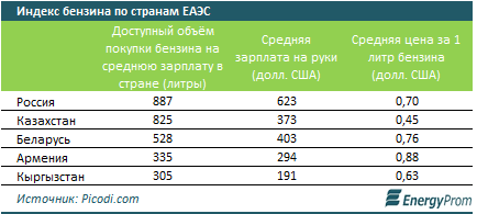 В отчете уточняется, что реальное лидерство в этом рейтинге удерживают страны Персидского залива. В Катаре, Кувейте и ОАЭ цены на бензин отличаются на один цент, а на среднюю зарплату можно купить от 4,9 тысячи до 6,5 тысячи литров топлива. В соседней Саудовской Аравии этот показатель несколько хуже - 3,3 тысячи литров. Присутствие в верхних строчках рейтинга таких стран, как США, Австралия и Канада, легко объяснить не только уровнем зарплат, но и объемом добычи нефти. В то же время, к примеру, Швейцария и Люксембург (3,3 тысячи и 2,8 тысячи литров) выделяются одним только уровнем дохода населения. Впрочем, бензин здесь дешевле по сравнению с Норвегией, Исландией или Нидерландами.