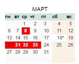 Один из выходных дней придется на среду, 8 марта. Еще три - на Наурыз. В честь самого теплого весеннего праздника мы отдохнем 21, 22 и 23 марта.