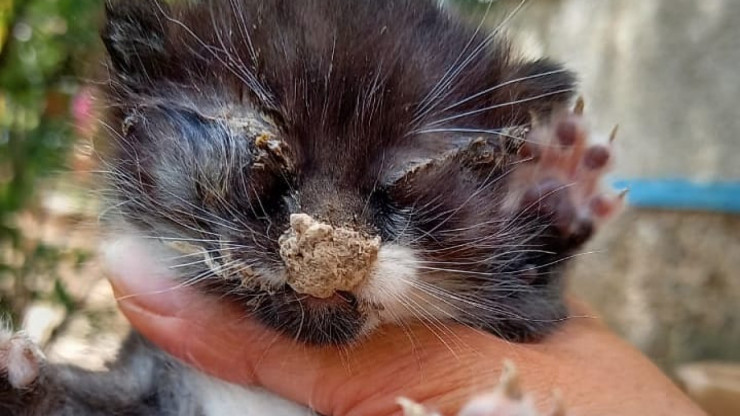 Котенка, пострадавшего от действий детей в одном из дворов в микрорайоне Орбита-2, случайно обнаружили волонтеры и отвезли в зооклинику. Один глаз у него уцелел, но за второй предстоит побороться.