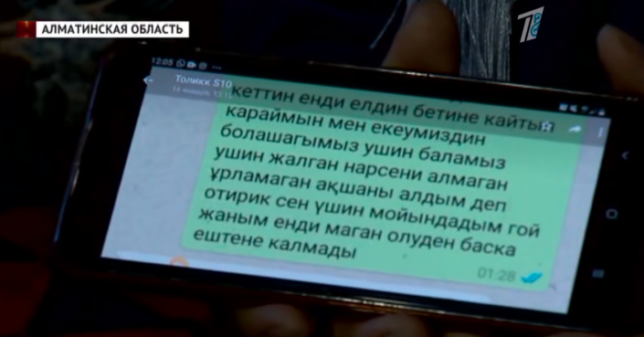 В браке молодые прожили около полутора лет, но о проблемах в семье мать Гульмайсы узнала недавно. По ее словам, сначала родители мужа выгнали невестку из дома. "Муж дочери пришел к нам домой показать заявление. Там она пишет, что украла 13 миллионов, отказывается от ребенка и согласна на развод. Заявление оказалось в полиции, но там его не приняли. Он сказал дочке, что если она так напишет, то они будут счастливы, будут вместе. Он обманул. Дочь умоляла его не бросать ее, но он уехал", - рассказала Ардак Джакубаева.