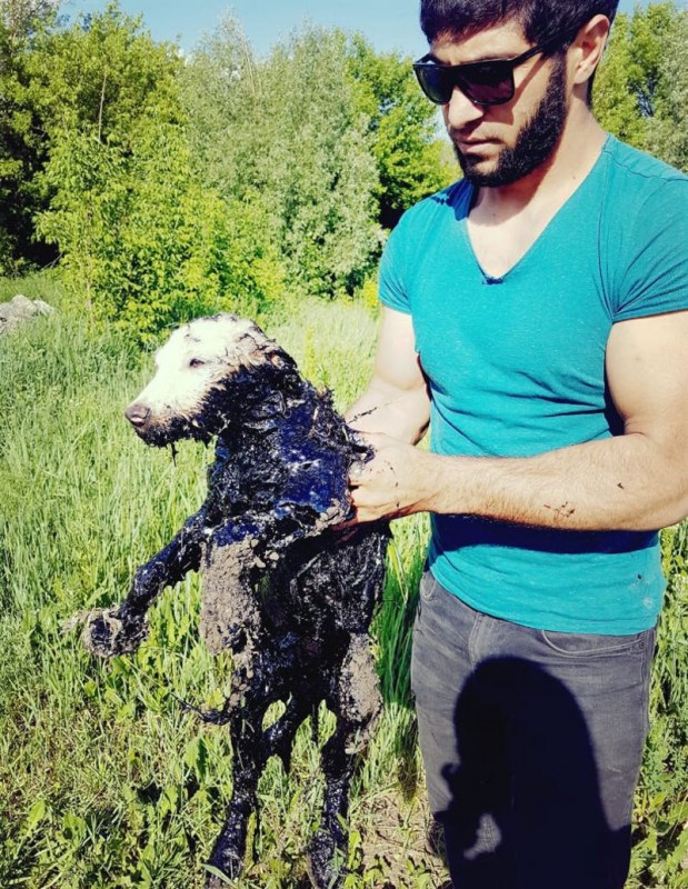 Активисты и ветеринары два дня отмывали песика от мазута. Зоозащитники забили тревогу и обратились в экологический патруль.