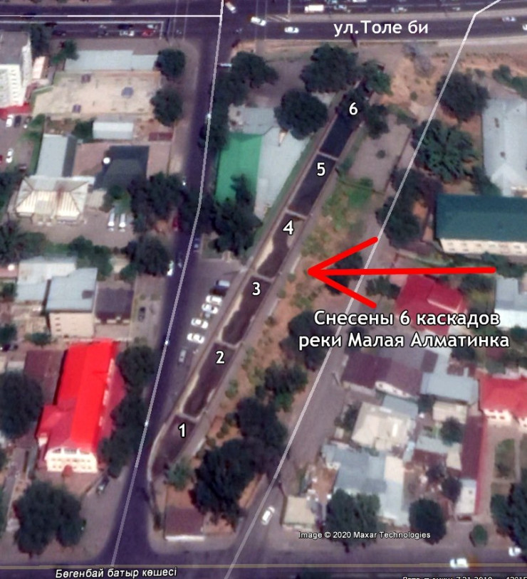 "В июне неравнодушные жители города, градозащитники и экологи обращались к Президенту Казахстана с просьбой запретить запланированные чиновниками работы по "уничтожению" зеленой зоны реки Малая Алматинка, запретить снос речных каскадов из железобетонных бассейнов реки, запретить вырубку произрастающих деревьев и снос газонов. Обращение алматинцев было услышано. Касым-Жомарт Токаев поручил акимату выполнить требование горожан.