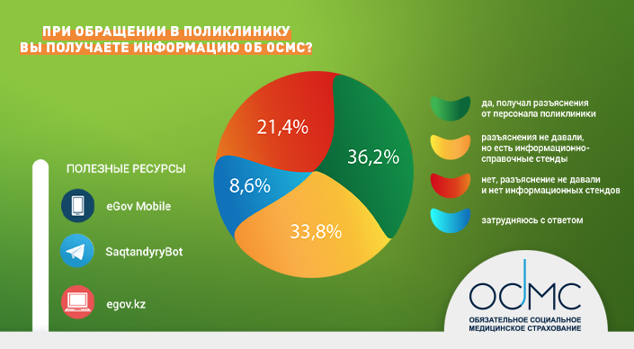 Что касается уровня информированности, то, по данным соцопроса, незначительно увеличилась доля тех, кто имеет уверенные знания об ОСМС (35,4 процента), зато частично осведомленных стало значительно больше – с 29 до 45 процентов. Сократилось почти вдвое число тех, кто абсолютно ничего не слышал о медстраховании.