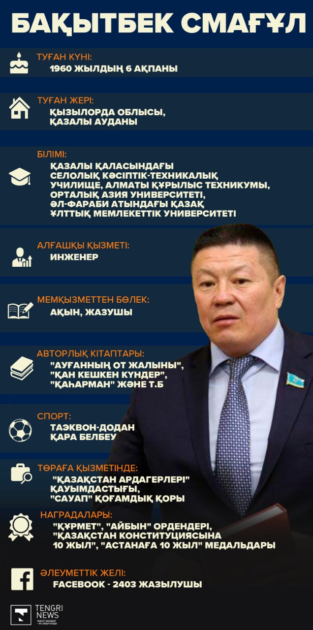 Желіде депутат Бақытбек Смағұлдың әлеуметтік желідегі жазбасы қызу талқыланып жатыр. Ол Қордайдағы қақтығыстың 10 себебін атаған болатын. Tengrinews.kz тілшісі пікірі қоғамдық талқыға түскен Бақытбек Смағұл туралы қызық деректер жинады.
