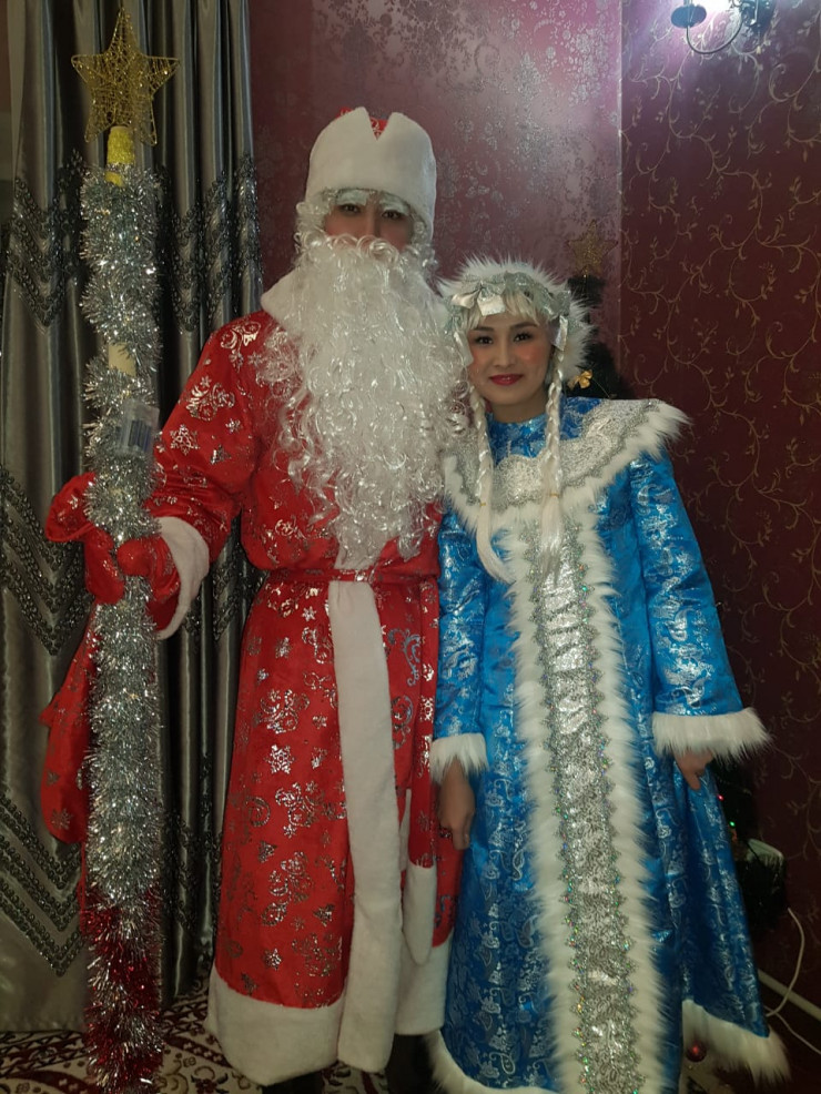 А Дед Мороз Темирлан вспоминает, что ему долго пришлось ставить голос. А после праздников он, наоборот, не мог перестать говорить басом своего персонажа. Но это того стоило: в 2019 году он с женой-Снегуркой поздравил ровно сто детей и раздал столько же подарков.