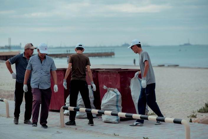 В Актау работники Kaspi.kz убрали мусор на Скальной тропе на побережье Каспийского моря.