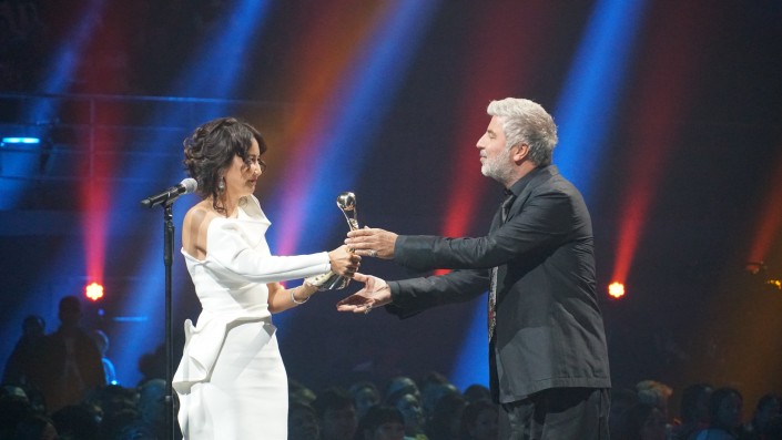 Статуэтку фестиваля певице передал казахский композитор Толеген Мухамеджанов. Прежде чем вручить памятный приз, он отметил красоту, обворожительность и соблазнительность Ани Лорак и пожелал ей еще больше поклонников.