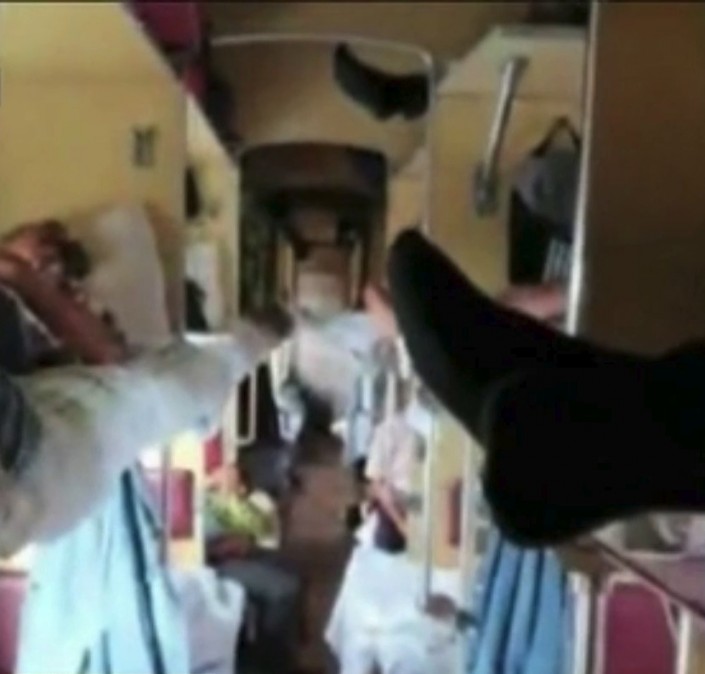 В социальных сетях появилось видео из вагона № 2 поезда. По словам автора видео, в вагоне, рассчитанном на 54 посадочных места, расположились порядка 90 пассажиров. Люди спали на третьих полках, а женщина с ребенком и вовсе ночевала в тамбуре.