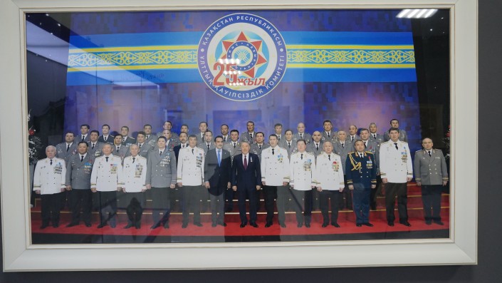На этом фото представлен руководящий состав КНБ на торжественном мероприятии в честь 25-летия со дня образования органов национальной безопасности.