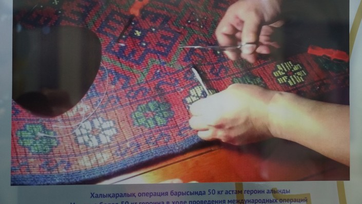 А так наркокурьеры пытались провести 50 килограммов героина. Его расфасовали в тонкие трубочки, которые вплели между волокон ковра.