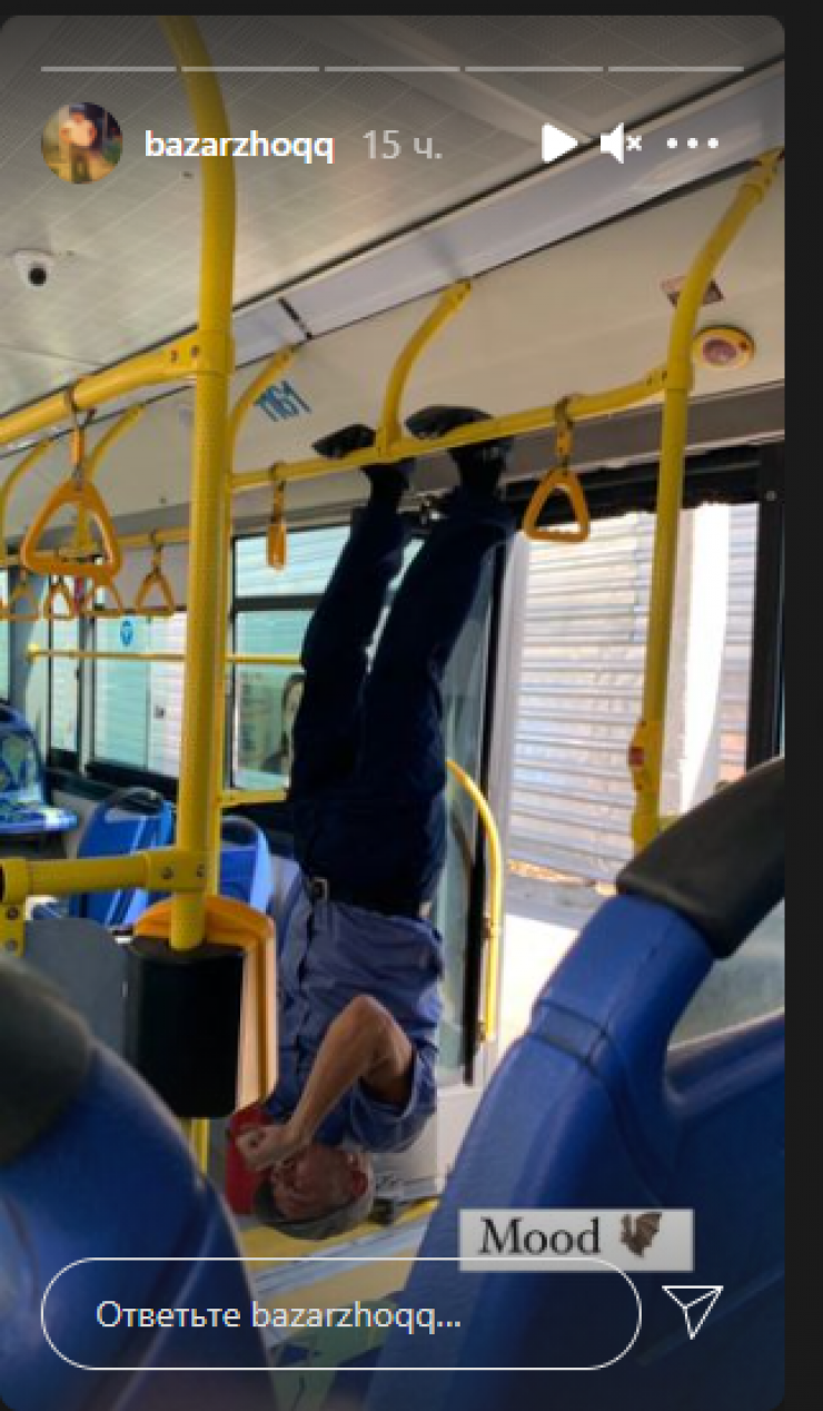 Пользователь Индира @bazarzhoqq опубликовала в Instagram фото водителя троллейбуса, который выполнял упражнения прямо на поручнях, используя их вместо турника. В комментариях многие пользователи отметили, что такие люди вдохновляют их на занятия спортом. Некоторые также отметили, что, по-видимому, водитель очень доверяет качеству поручней в своей машине.