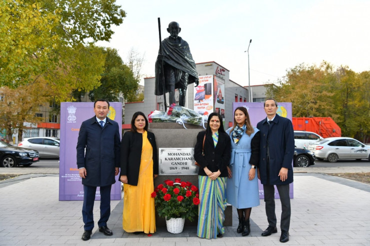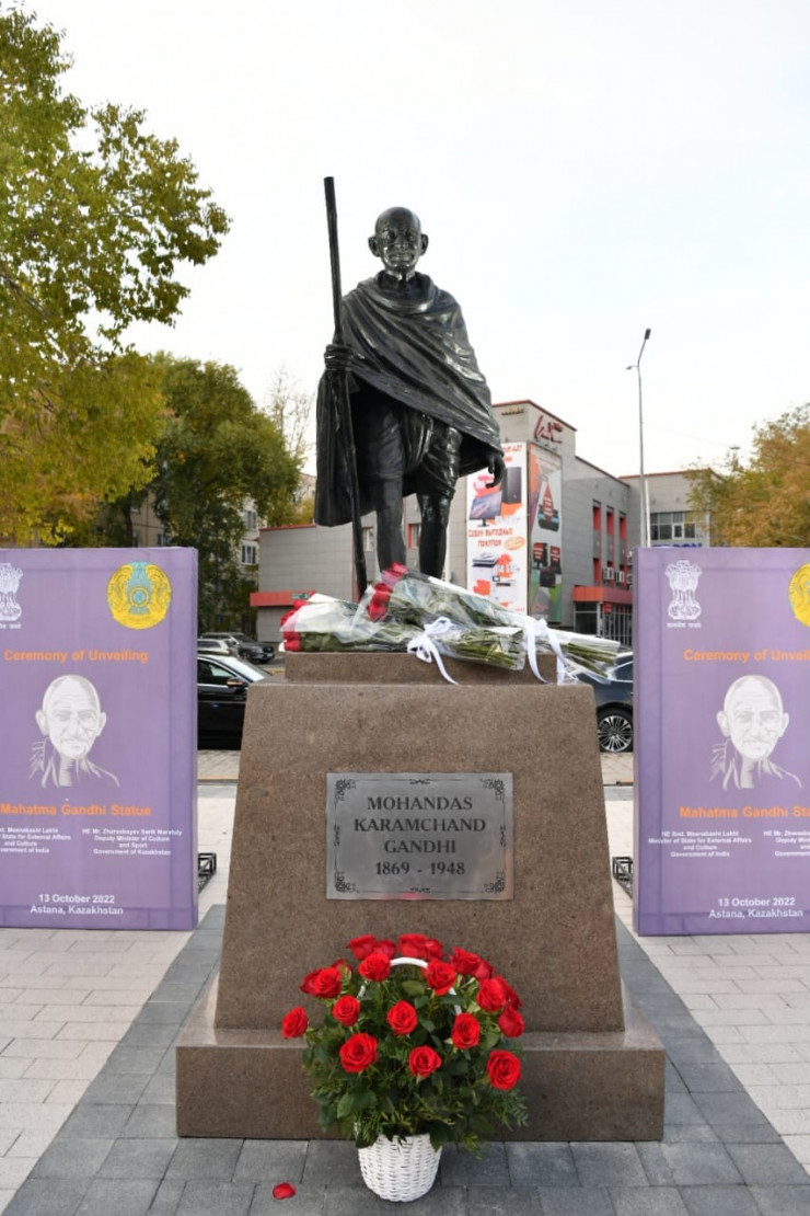 Государственный министр иностранных дел и культуры Индии Минакаши Лекхи прибыла в Астану для участия в саммите СВМДА. В ходе визита в годовщину дня рождения Махатмы Ганди она приняла участие в открытии статуи в натуральную величину.