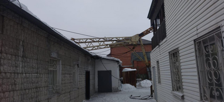 Стрела крана проломила крышу магазина в центре Павлодара