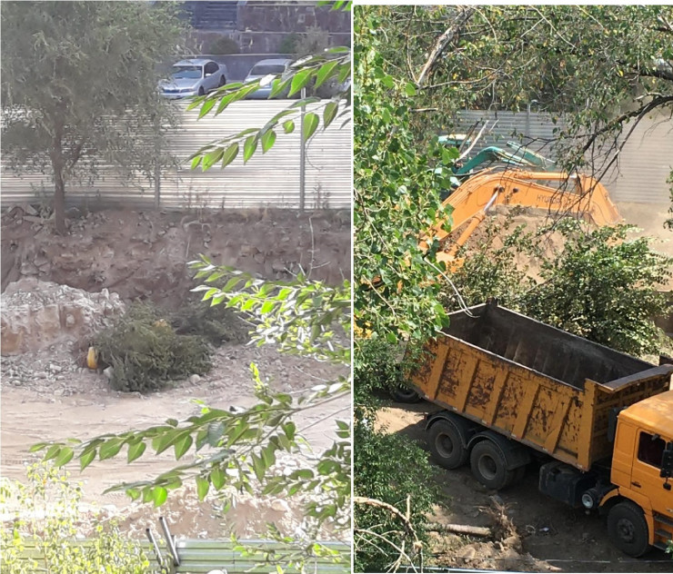"Мы, жители Самала-3, против, однако застройщик во всю копает котлован. Ежедневно с 3 июля экскаватор рано утром, в 08.30, начинает выкапывать землю, которую потом вывозят два-три грузовика. И это рытье котлована застройщик называет подготовительными работами? Мы все фиксируем и выкладываем в Instagram, но акимат бездействует", - заявила одна из жительниц близлежащего многоэтажного дома Галина Ишутина.